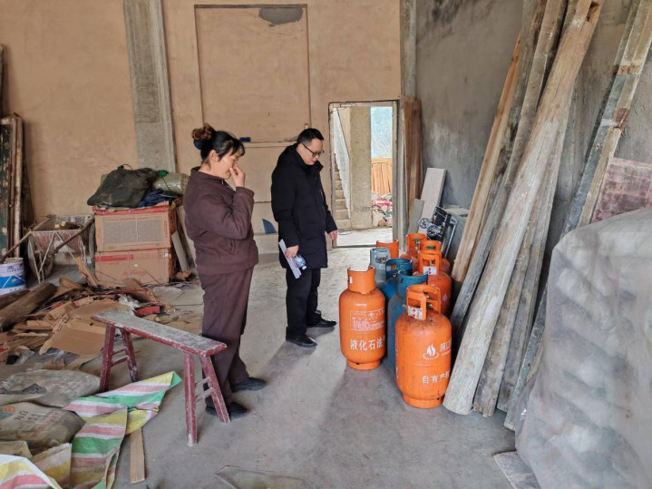 在燃气配送店,工作人员重点检查瓶装燃气运输是否规范运输、是否对送出的燃气瓶进行台账登记、并检查燃气瓶是否有过期现象和二维码标签、消防设施是否配备规范、摆放环境是否安全等。